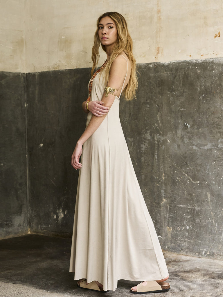 Descubre la elegancia sin esfuerzo con nuestro vestido largo de antelina ecológica en el suave tono Ivory. Este vestido es una experiencia de comodidad inigualable, diseñado para abrazar tu cuerpo con suavidad y estilo.