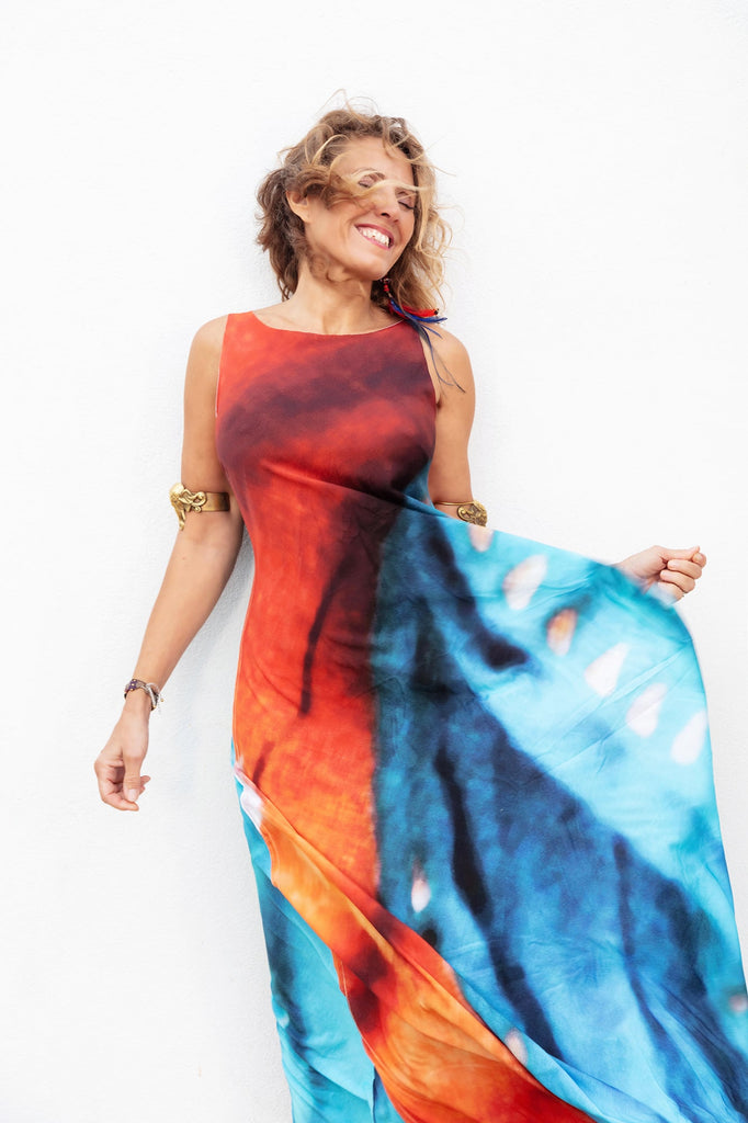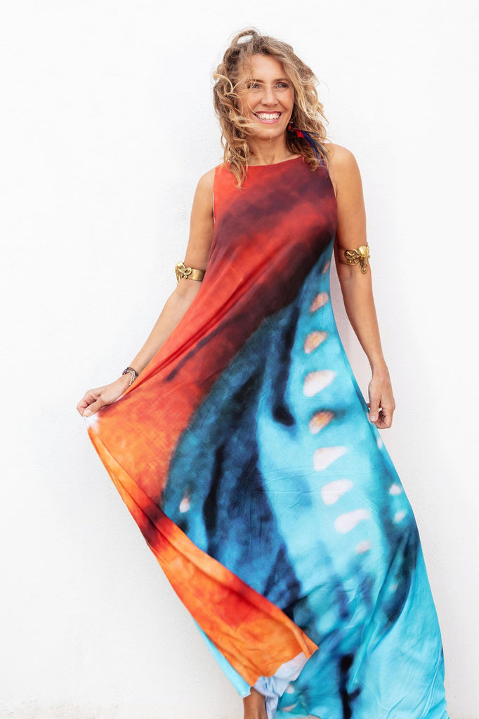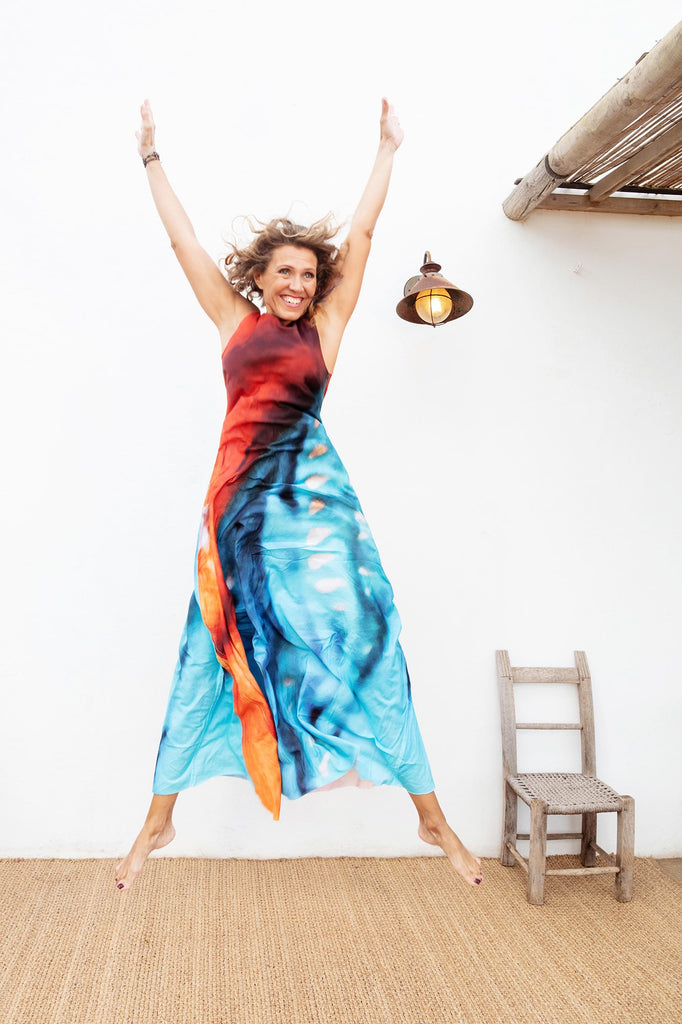 Dance, dance, dance 🎶 el vestido perfecto para no parar de bailar. Con sus colores alegres que evocan un atardecer en la playa, estarás envuelta en una atmósfera de diversión y libertad. Déjate llevar libremente bajo el sol.